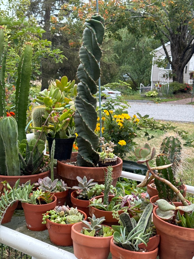 Welcome to my jungle! Now that fall is upon us it’s time for every single cactus plant has to be moved inside.