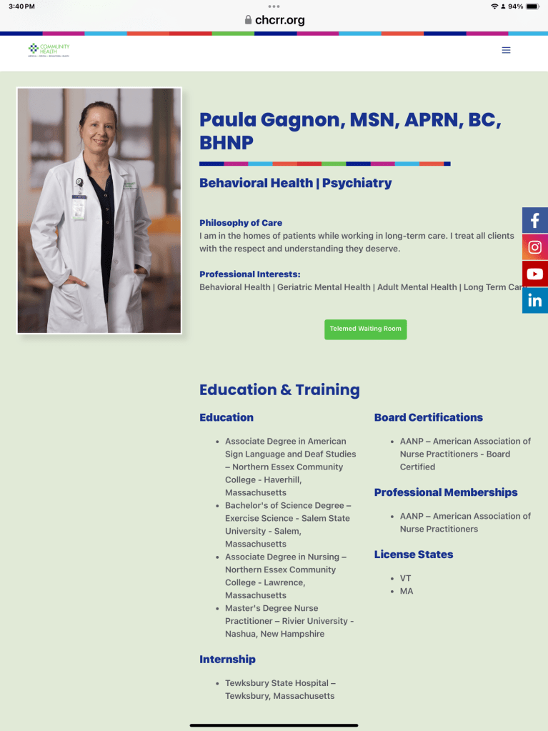 No I never called or did anything to alert the medical profession she was lying about being a psychiatrist. I just posted it here. It’s not a big blog. It’s not followed by a lot of people, but it was a start. I was going to sit on information and hope she did the right thing. But of course she’d already done the wrong thing so why would she wanna do something good?